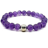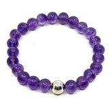 This amethyst bead bracelet has one sterling silver accent bead. Beads are 8mm.