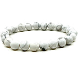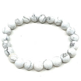 This white howlite bead bracelet has one lava accent bead. Beads are 8mm.