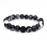 This zebra jasper bead bracelet has one black lava accent bead. Beads are 8mm.