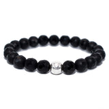 This etched/faceted onyx bracelet has one sterling silver accent bead. Beads are 8 mm.